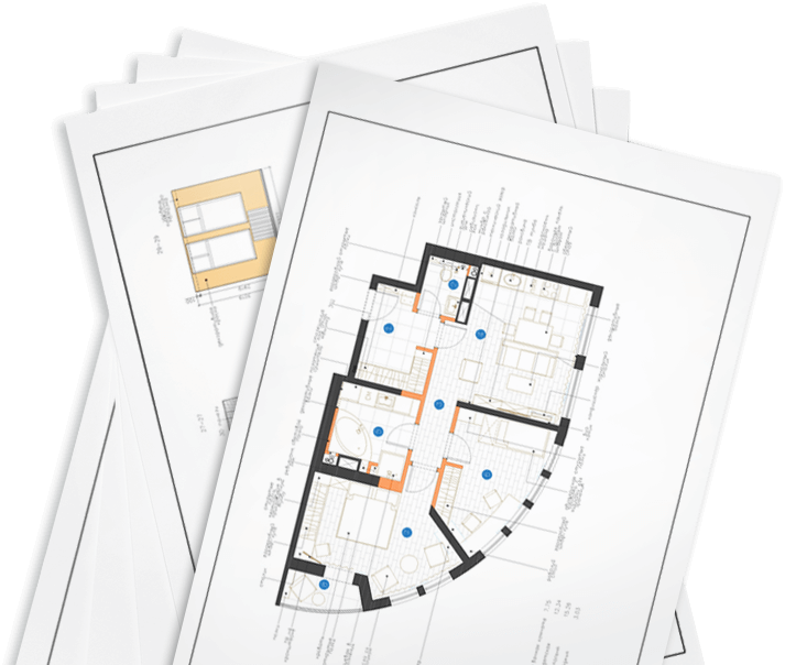 С размерами размещения розеток, зеркал, телевизоров. А так же с описанием будущей формы и видом покрытия.